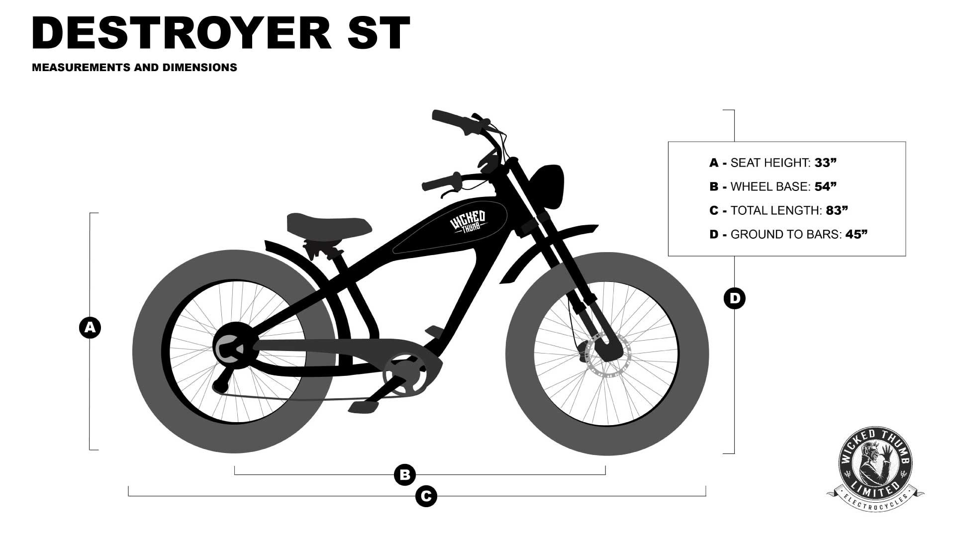 STANCE > 1.75” Seat Tube, 25.25” Reach, 27.25” Stand Over Height, 34” Minimum Saddle Height, 30.25” Width, 83” Length